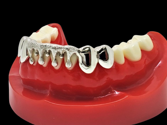 Custom Grillz, Solid Sterling Silver Drip Dripping With Diamond Dust Cut Grillz