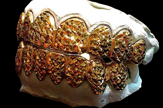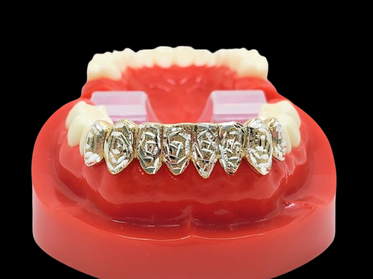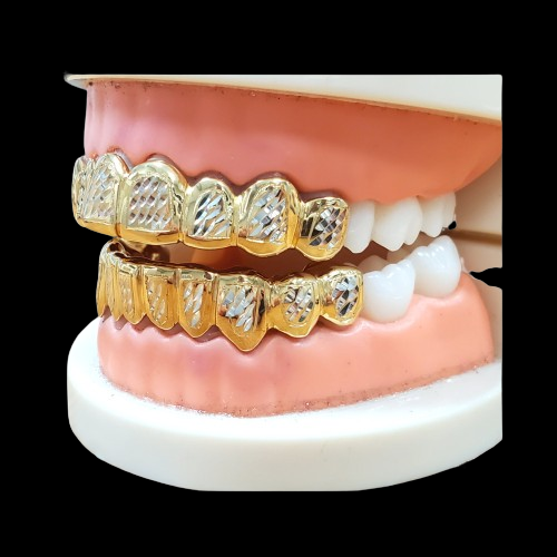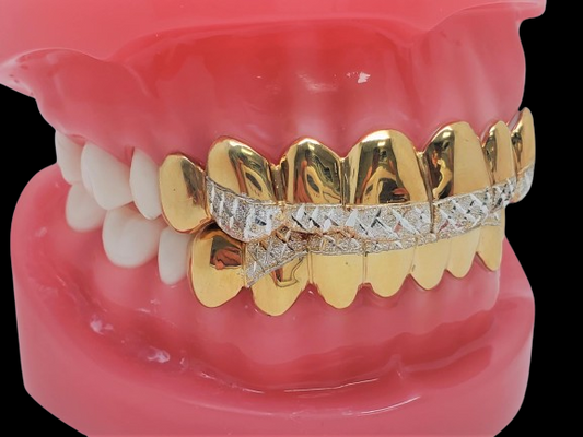 Custom Grillz, 925 Solid Sterling Silver w/18K Yellow Gold Plated Two Tone Diamond cuts
