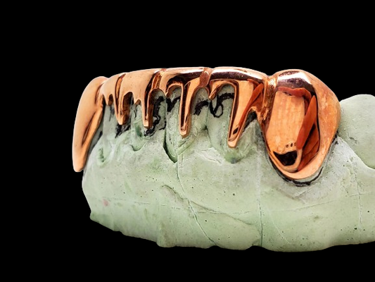Custom Grillz, 925 Solid Sterling Silver Dripping Style Grillz (Yellow Rose Silver)