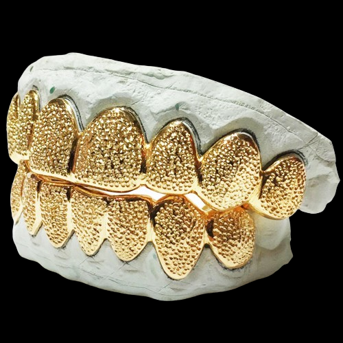 925 Solid Sterling Silver 18K Yellow Gold Plated Dust+Diamond Cut Grillz