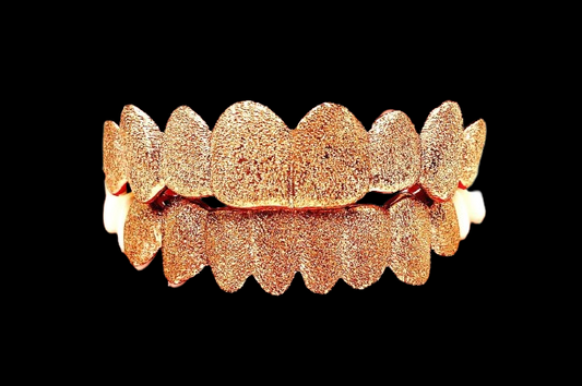 925 Solid Sterling Silver 18K Rose Gold Plated Dust + Diamond Cut Grillz
