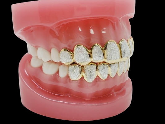 925 Sterling Silver 18K Yellow Gold Plated Two Tone Diamond Dust Cut Custom Grillz