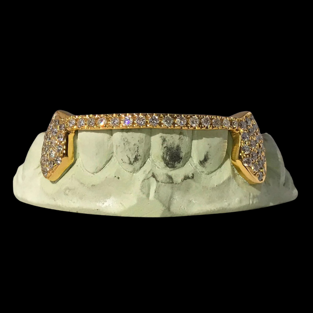Custom 6 Teeth One Row Diamond Bar with Diamond Tip Extended Fangs Gold Grillz