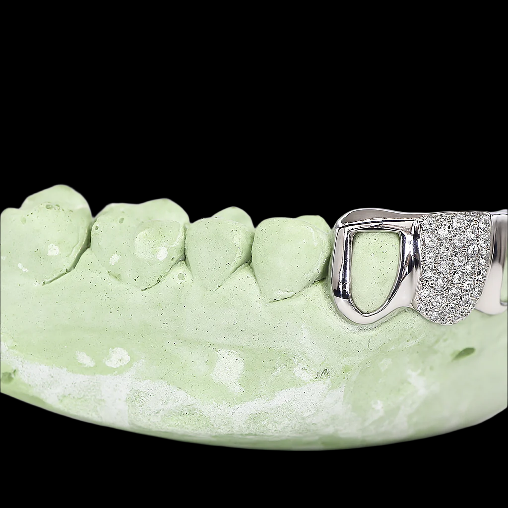 Custom Grillz Hand Set Moissanite Diamonds. These stunning pieces are a true work of art, featuring Moissanite diamonds of the finest quality and hand-set with the utmost attention to detail.